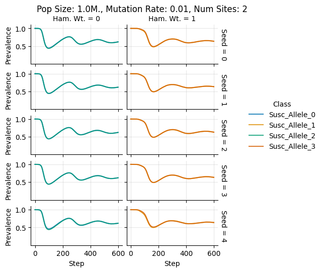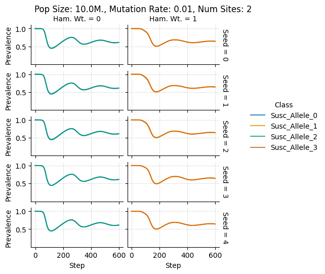 teeplots/col=ham-wt+hue=class+kind=line+mutation_rate=0.01+n_sites=2+pop_size=10000000+row=seed+viz=relplot+what=Susc+x=step+y=prevalence+ext=.pdf
